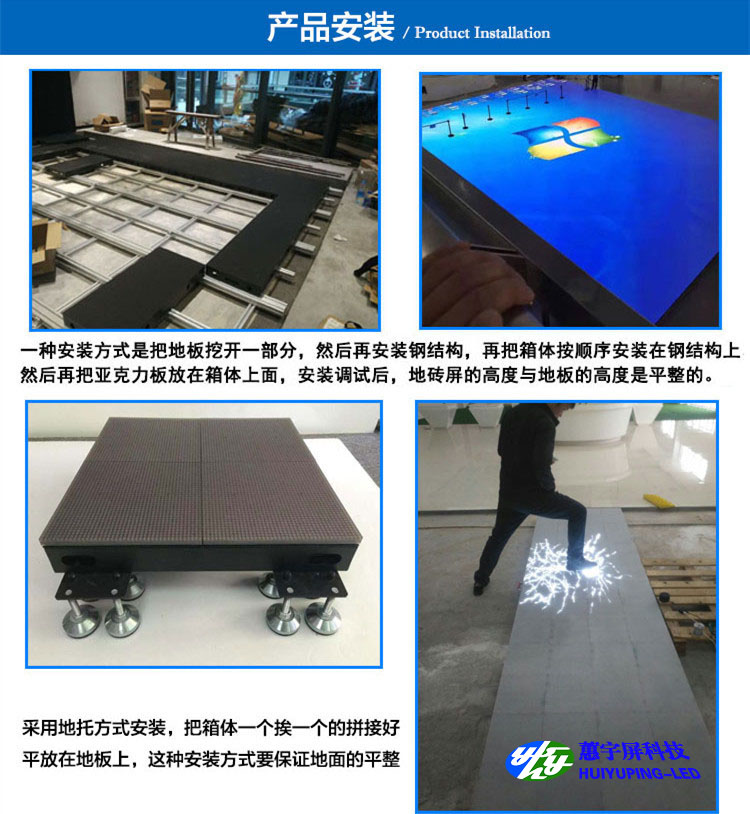 1、強力PC面罩,箱體表面無需加鋼化玻璃,透光性好,模塊的點對面支撐設計,可直接踩踏。