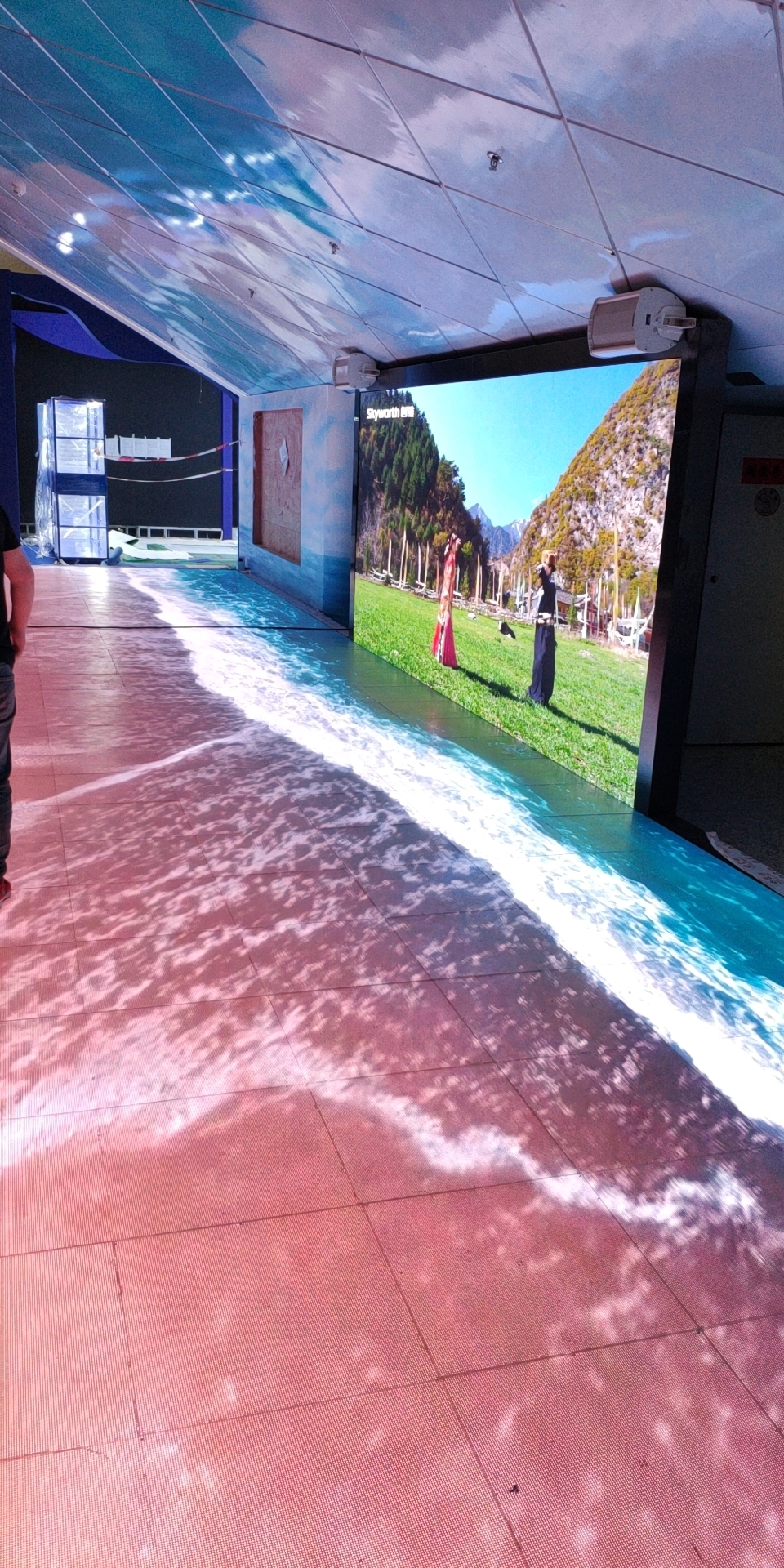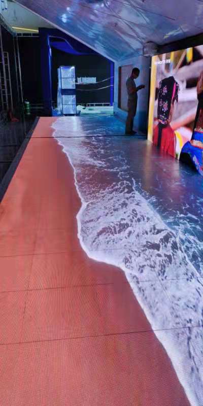 LED地磚屏它擁有高密度物理像素點和卓越的防水性能,酒水撒落在上面絲毫不能影響其正常工作。它還有個最大的特點就是載重性能,它可以承重人員在上面隨意踩踏不會損壞。經(jīng)過特殊工藝制作還可以承受2噸以上汽車壓過。靈活的模塊化設計,可實現(xiàn)地板、天花板、T臺等各種顯示應用。