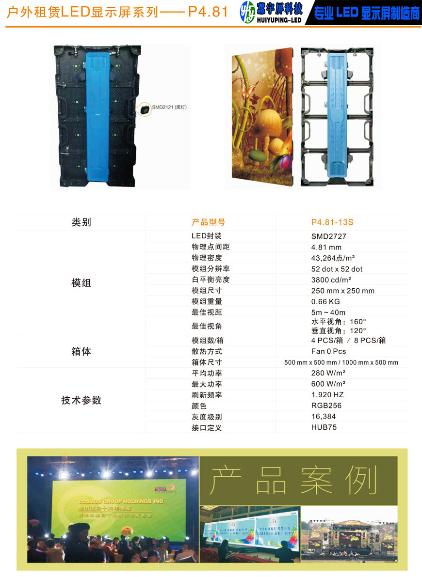 戶外外P4.81led租賃顯示屏產(chǎn)品參數(shù)