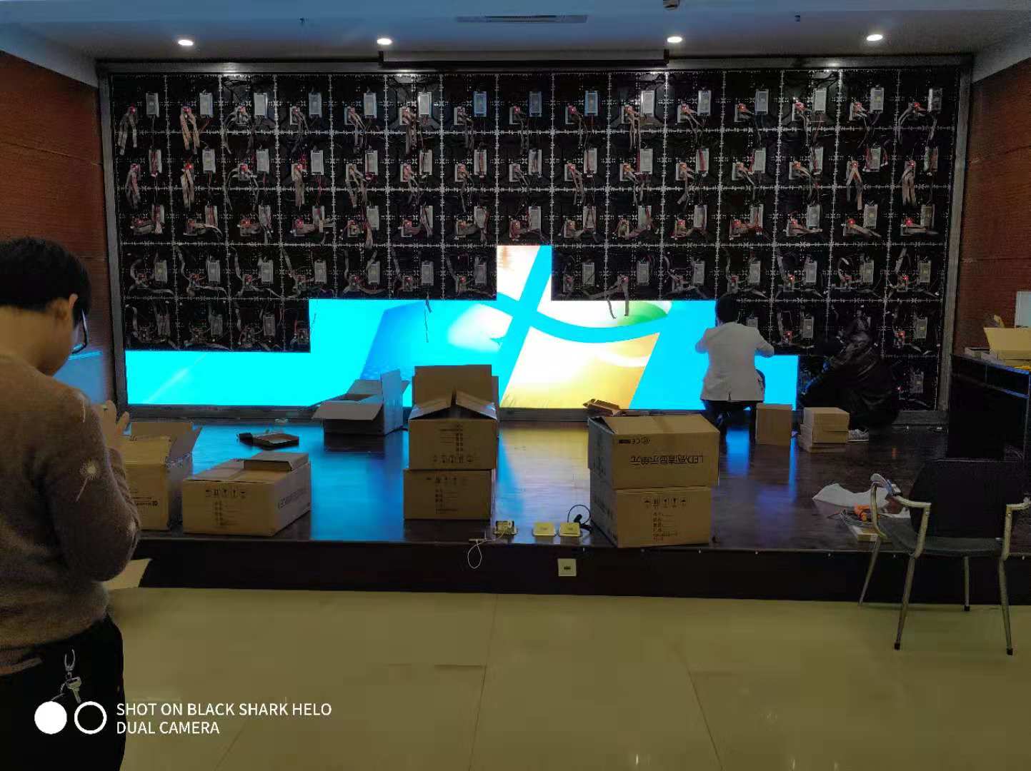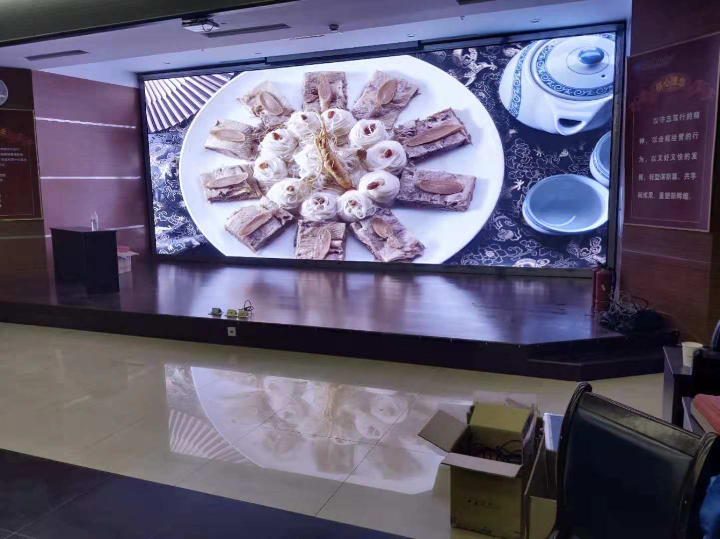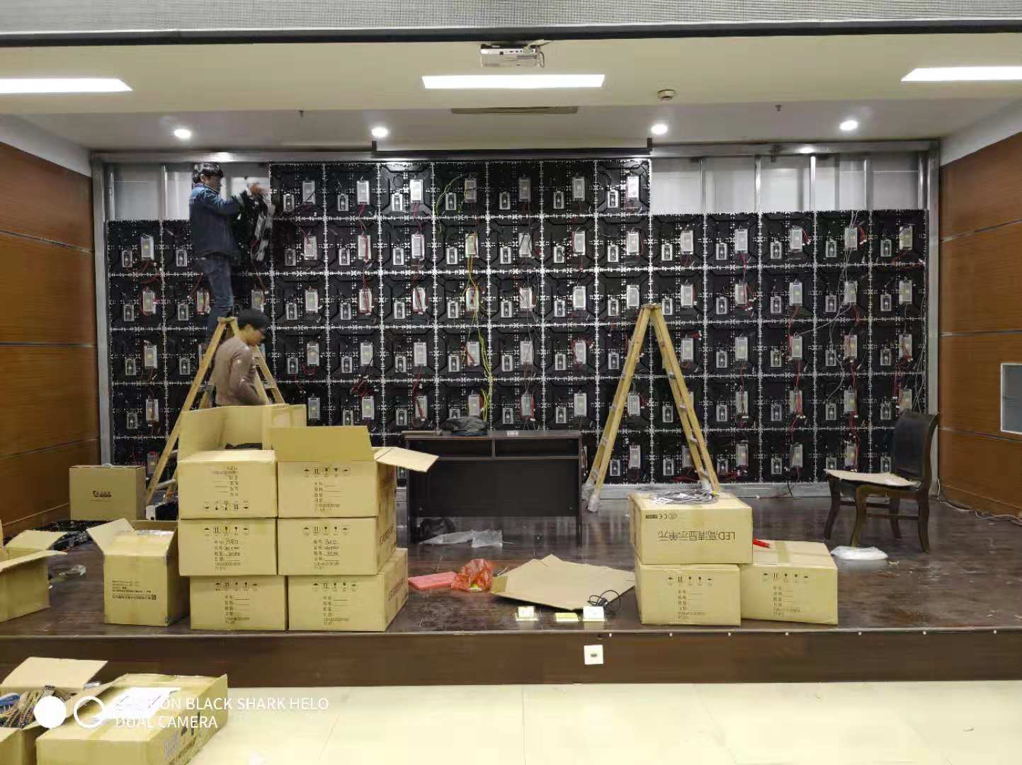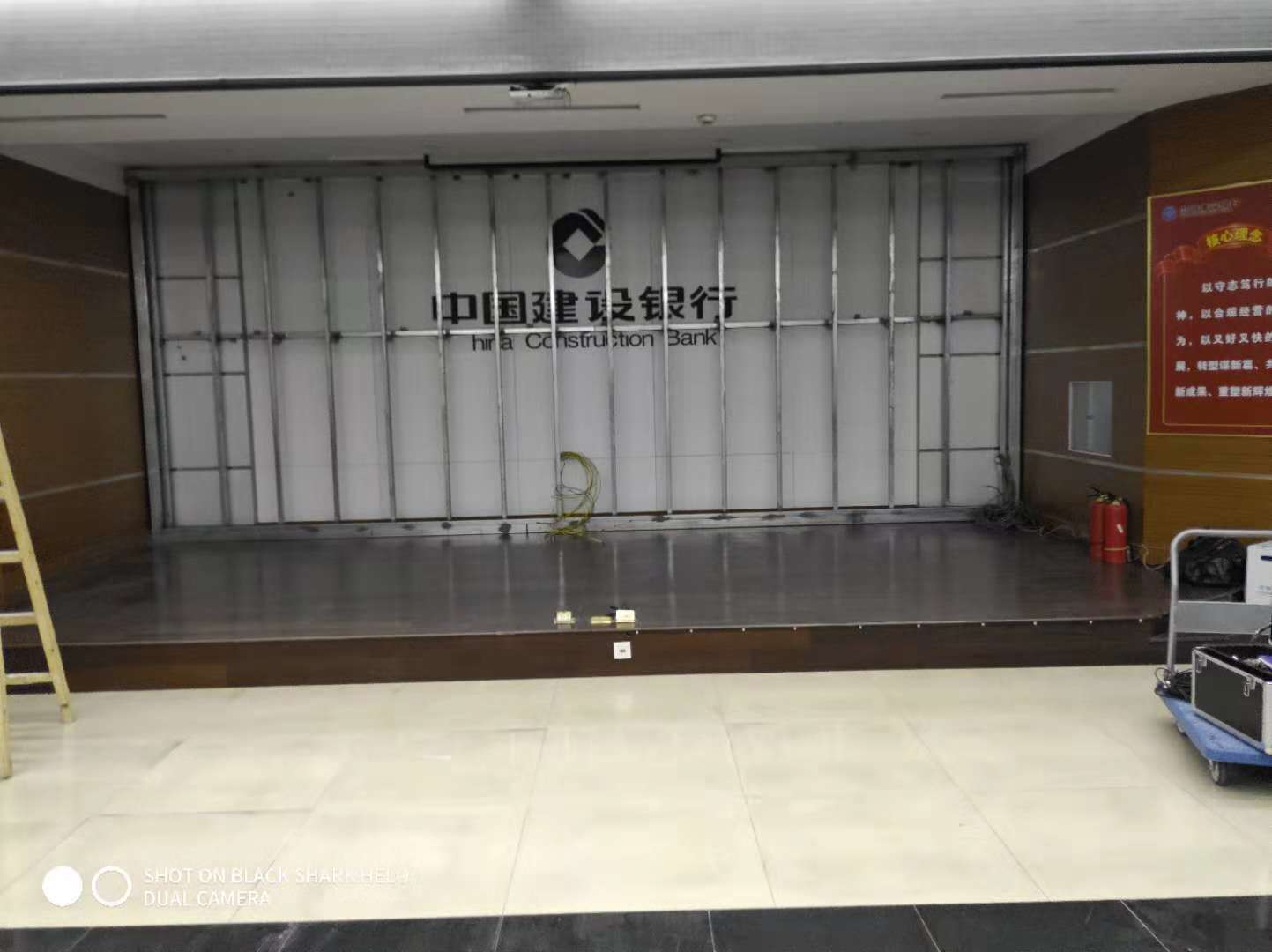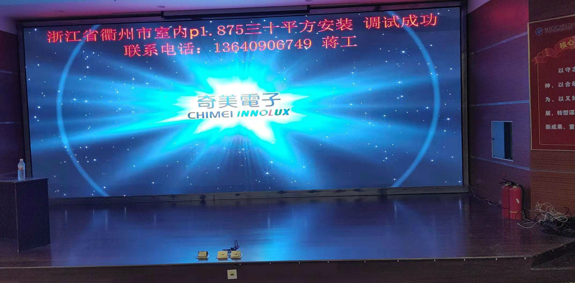 衢州建設衢州分行總部會議廳LED全彩屏采用p1.875小間距LED顯示屏 燈珠采用晶臺封裝驅動采用高刷芯片2053 刷新達到3840