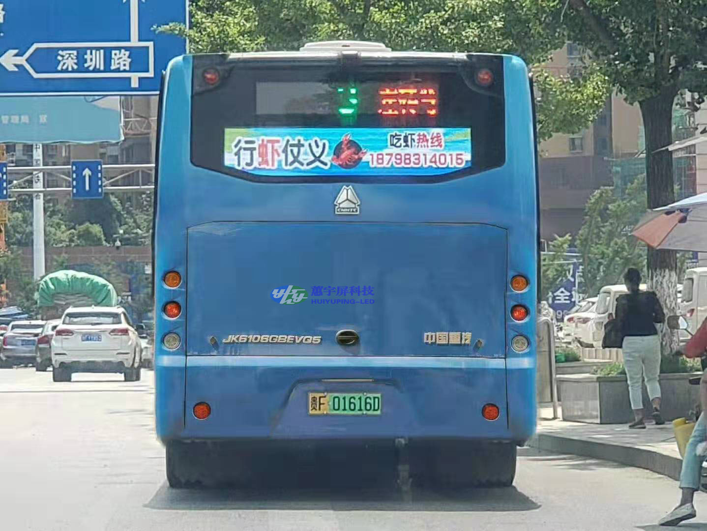 您當前位置:主頁  > 全彩LED顯示屏展示  > 車載LED顯示屏  > HY公家車車尾LED全彩顯示屏