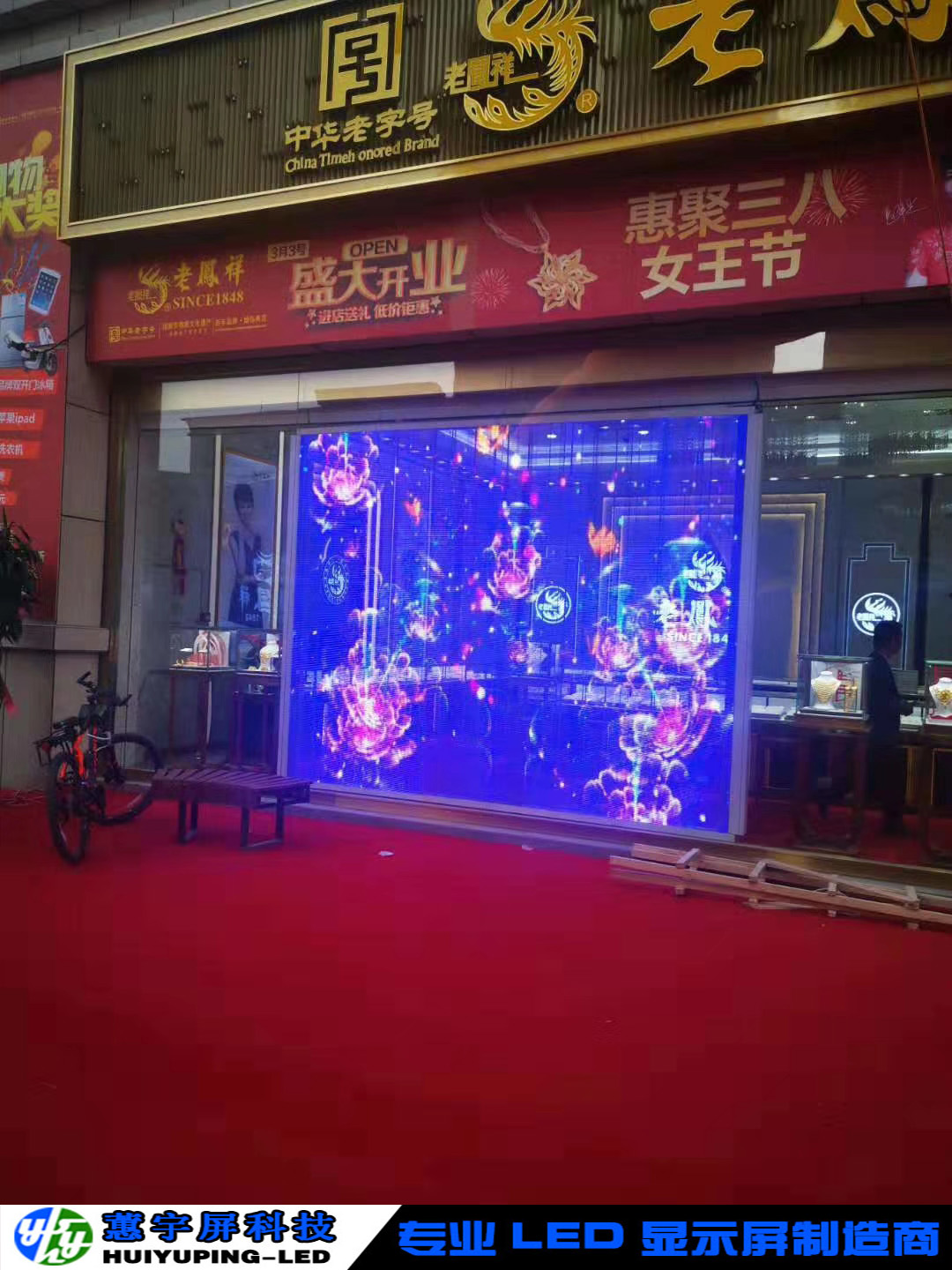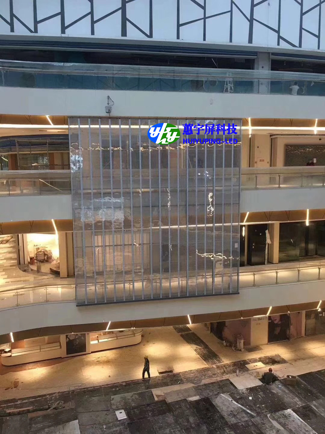 2)獨特的顯示效果,背景通透,播放的廣告畫面給人懸浮在玻璃幕墻上的感覺