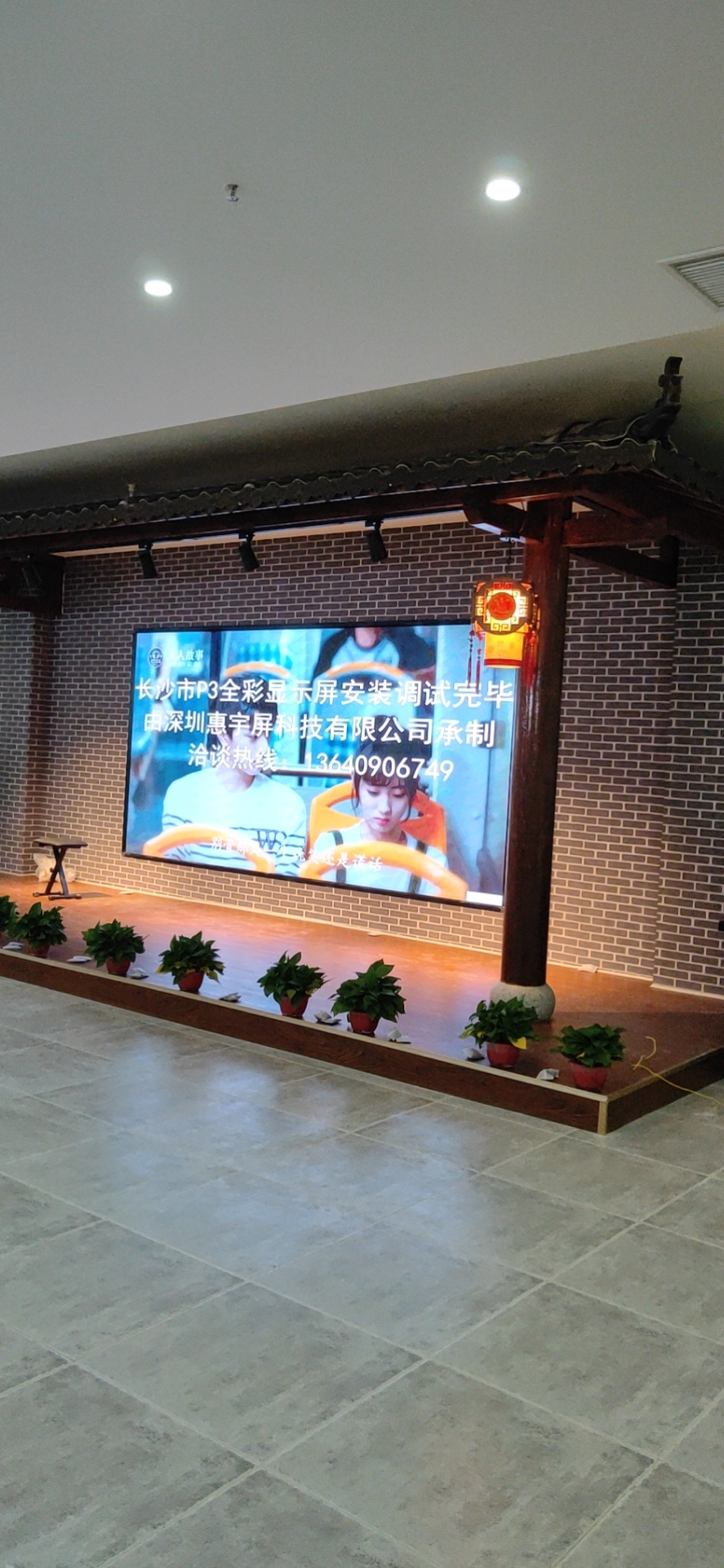 長沙茶館LED顯示屏-p3全彩屏安裝完成