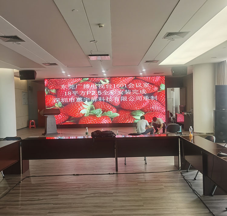 東莞廣電中心1號會議室LED大屏完成,產品安裝快捷,維護方便。高清畫質,完美體驗。